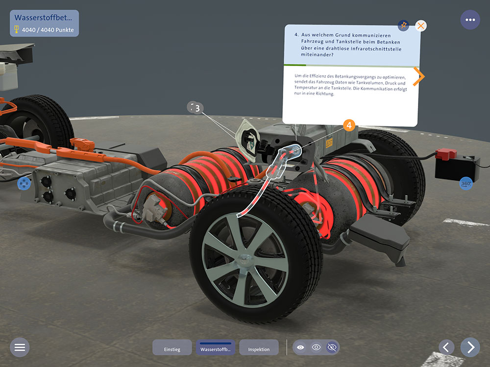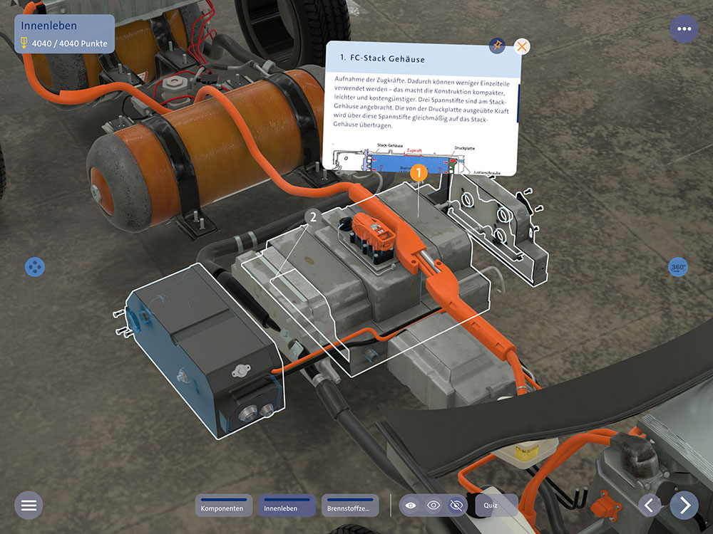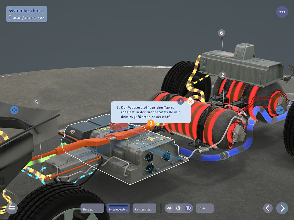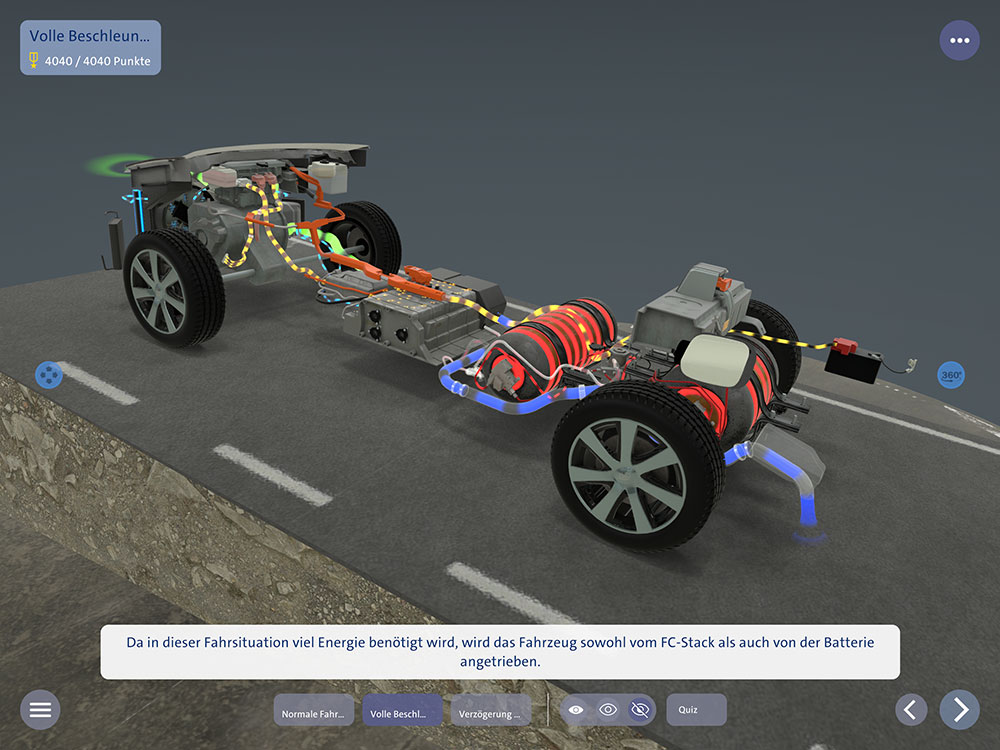 Key processes and interrelationships are explained using typical driving situations such as standstill, acceleration, deceleration, or reversing, as well as during refueling. - Knowledge checks on all topics
